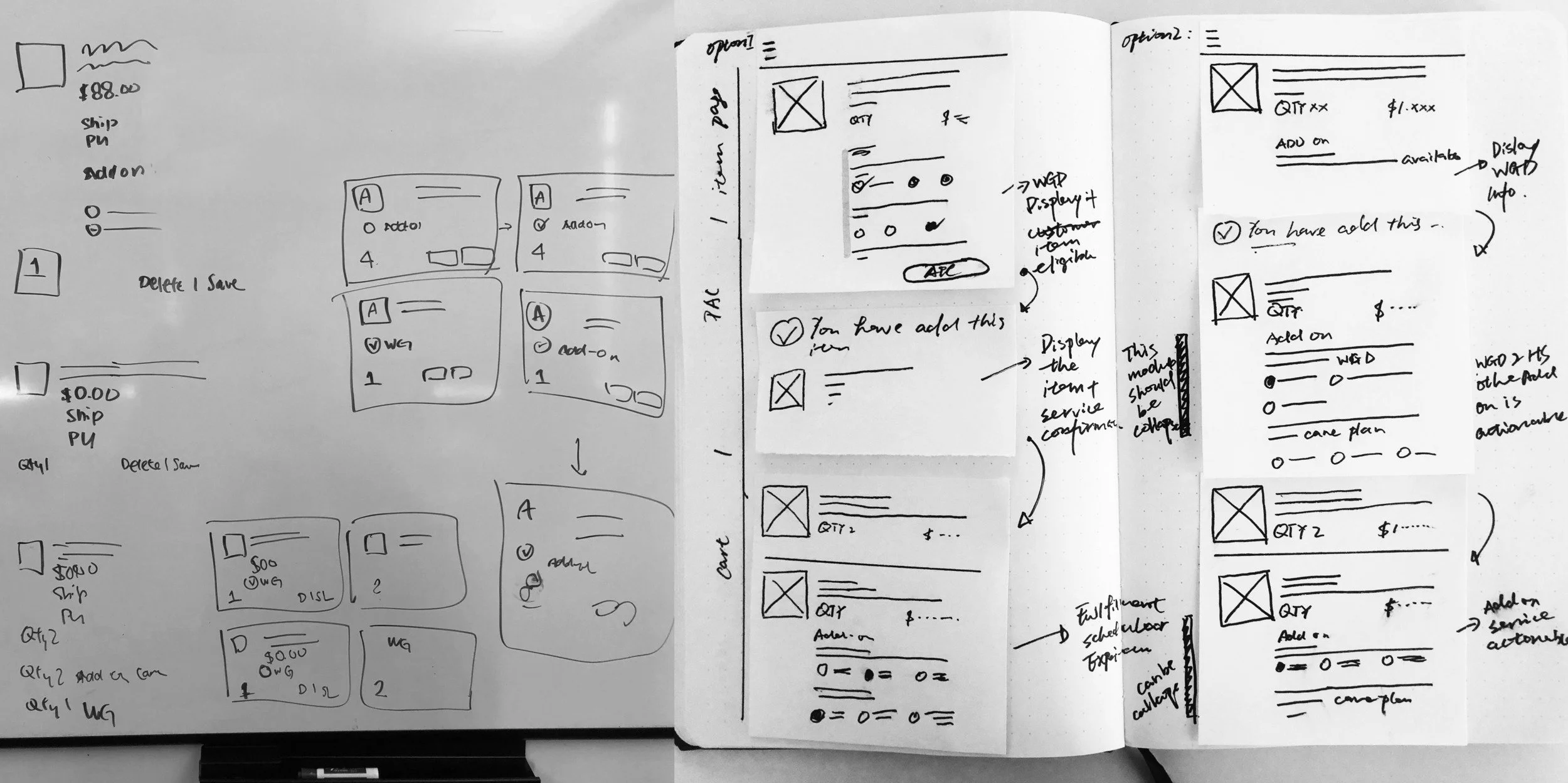 I led the design of the white glove experience on CXO team (Cart& Checkout experience ) from September 2018 to December 2018 and collaborated two other designers responsible for fullfillment / scheduler experience . In addition, I worked alongside another a Researcher, Content Strategist and 2 Product Managers from the vertical product team and cart&checkout product team on this project.