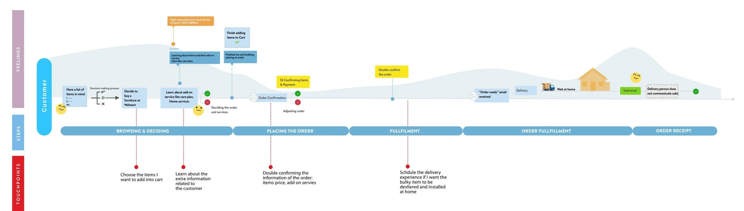 To better understand the user journey, we created a Customer Journey Map, laying out the journey and formulating hypotheses based on user behavior. This allowed us to gain insights into the user's experience and identify pain points, enabling us to develop design solutions that were tailored to their needs.
